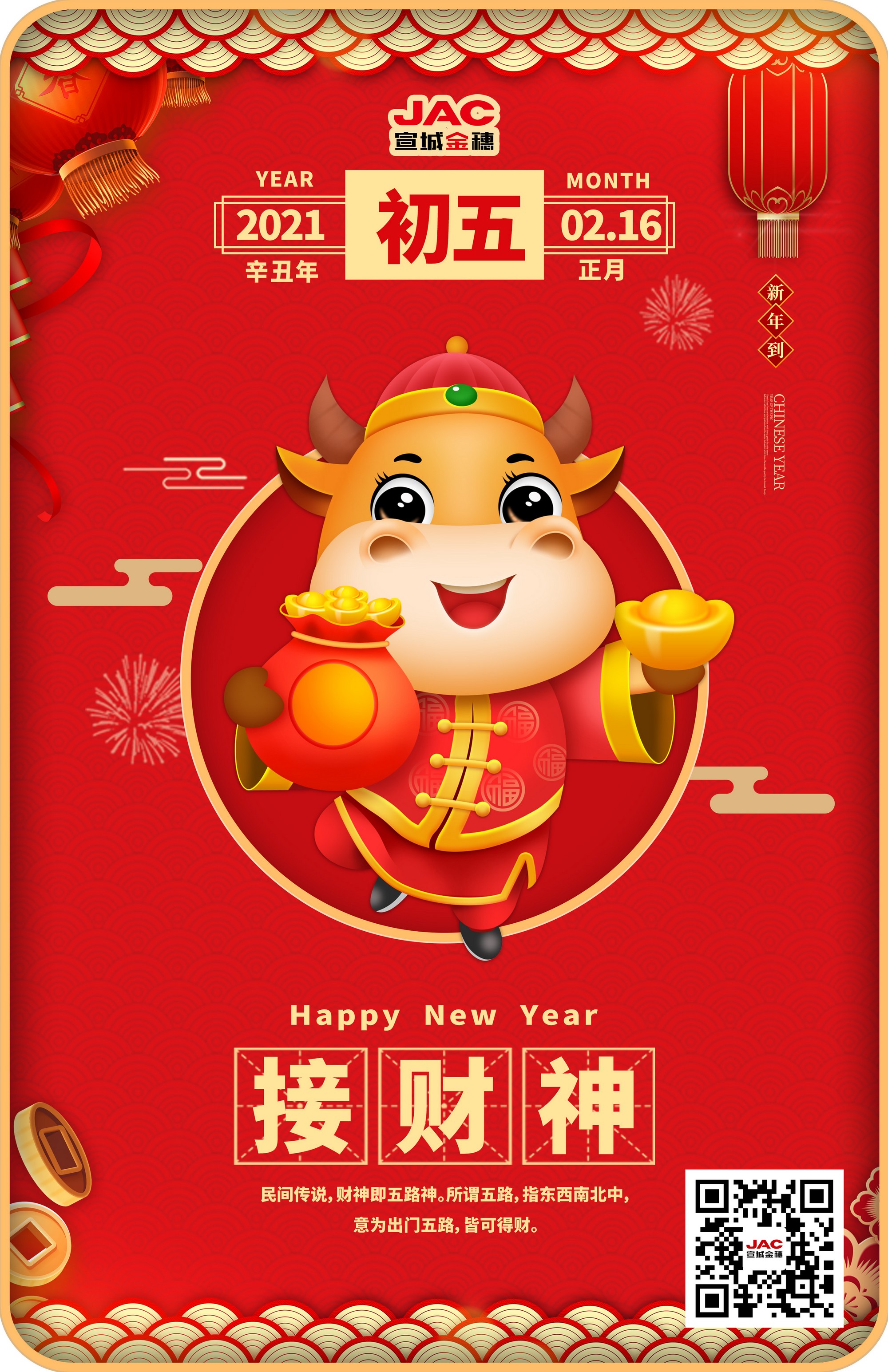 大年初五丨接財神,迎財神,財神來了請進門 發(fā)布時間:2021-02-16 閱讀次數(shù):2261 來源:宣城金穗 民間傳說,財神即五路神。所謂五路,指東西南北中,意為出門五路,皆可得財。 分享到: